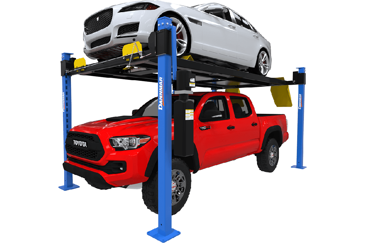 This high-quality lift by Dannmar, provided by Danbury Automotive Lifts, is ideal for garages and workshops that need to maximize storage, service capacity, and height flexibility.